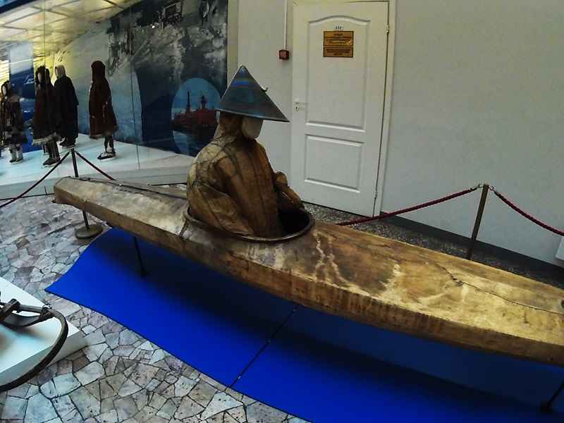 Кожаная лодка каяк алеутов.